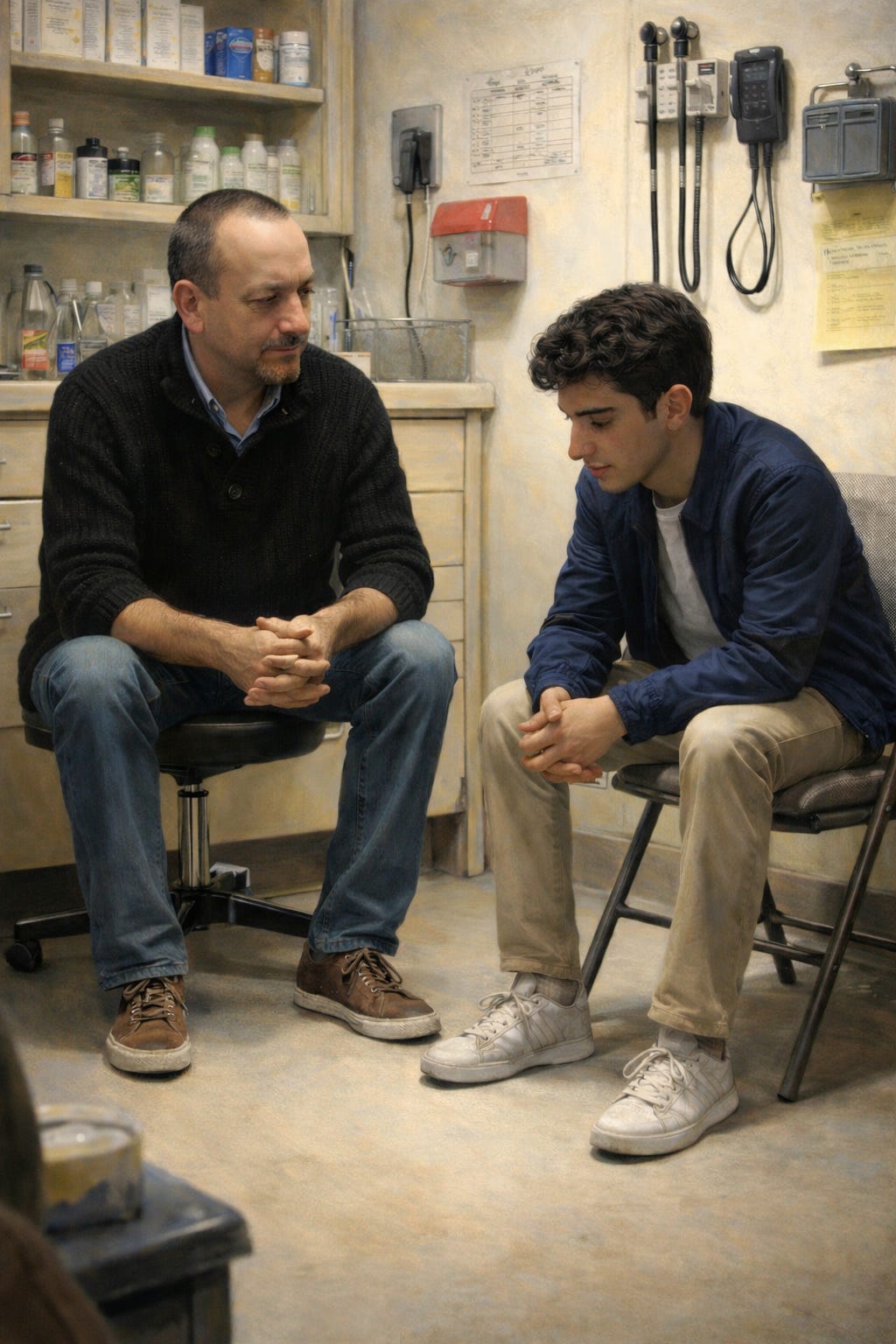 My first patient was a college kid (we’ll call him Gregory) at Glendale Community College. At the time, I was working as a pre-licensed intern at the Glendale Community Counseling Center. “Counseling Center” is a bit of a misnomer, as is the label “intern.” The supervision at the Glendale Community College consisted of a weekly meeting with a small group of psychology students who were seeing patients for the first time. At this meeting, the program director went over bureaucratic guidelines around intake forms and pretty much left it at that. The counseling center was whatever office happened to be available in the nurse’s suite; in this case, a small, chaotic room with two chairs facing each other, cramped around an IV station, a first aid cabinet, and a blood- pressure monitoring stand – symbols of disease-and-cure medicine.